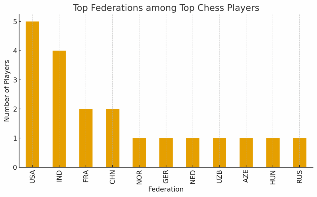 ✅ Top Federation: 🇺🇸 USA — leading with the highest number of top-rated players.